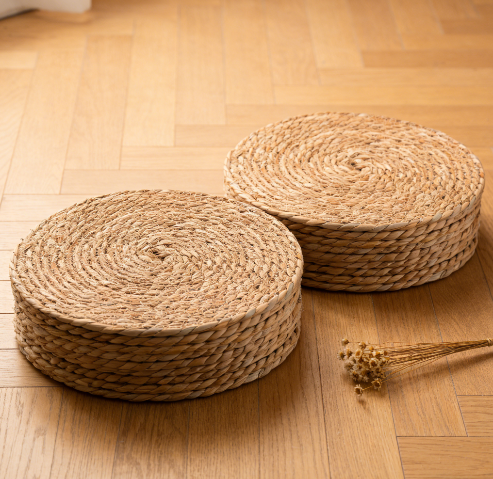 The braided rattan-style texture introduces subtle visual depth and organic appeal. The natural fibers are heat-resistant for normal meal temperatures and allow minor airflow between table surfaces and dishware. Non-slip structure helps maintain placement stability during use.