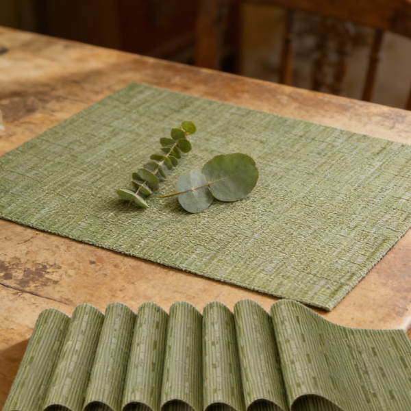 Vinyl Woven Placemats Set of 14 – Washable Non-Slip, Green